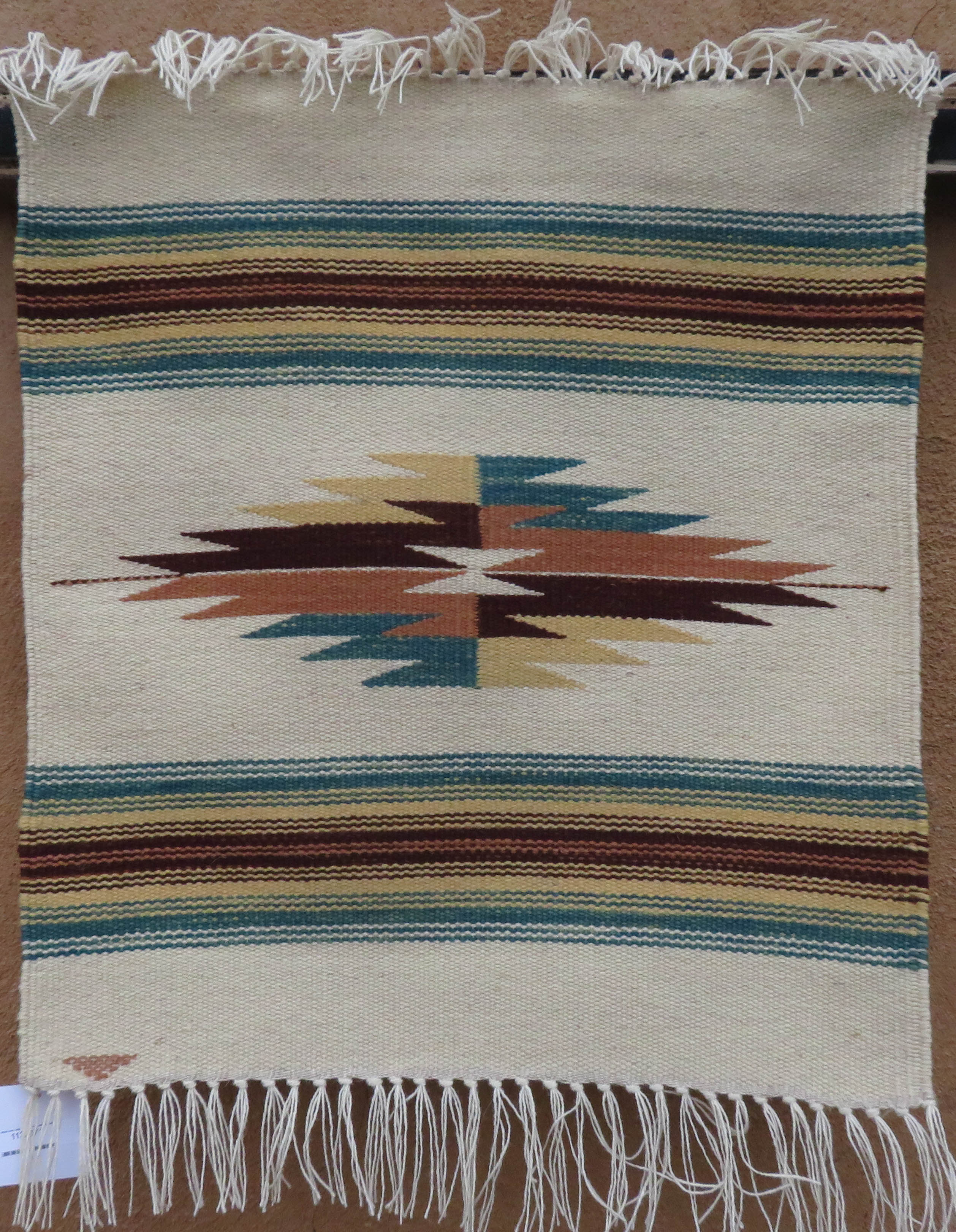 20X20, Chimayo, Valorie Valdez, Natural- Green (Naturally dyed with Indigo over Chamisa), Yellow, Brown (Black Walnut)