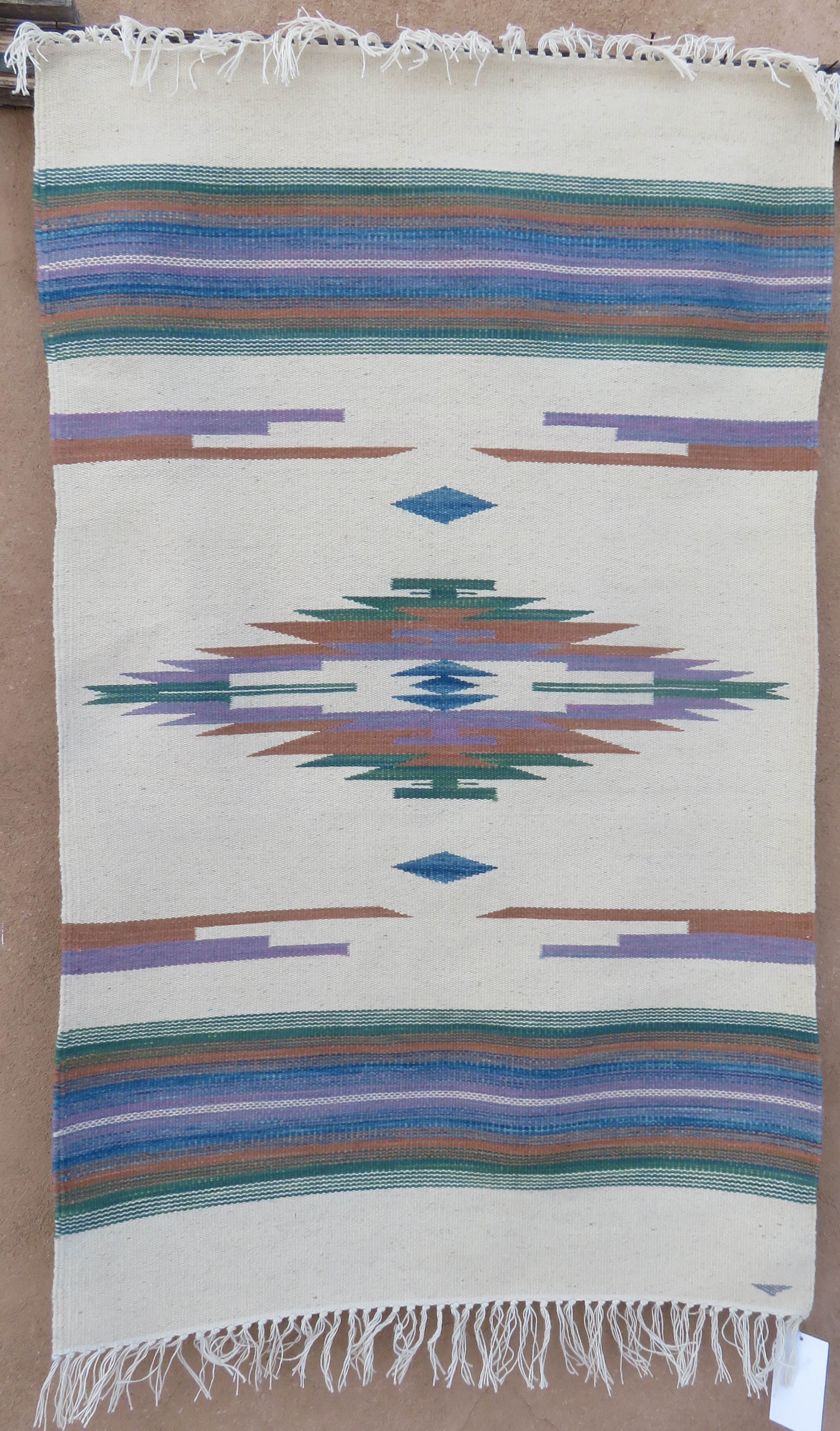 Chimayo, 30X45, Valorie Valdez, Natural-Green (Naturally dyed with Indigo over Chamisa), Brown (Black Walnut), Blue (Indigo), Purple (Indigo over Cochineal)