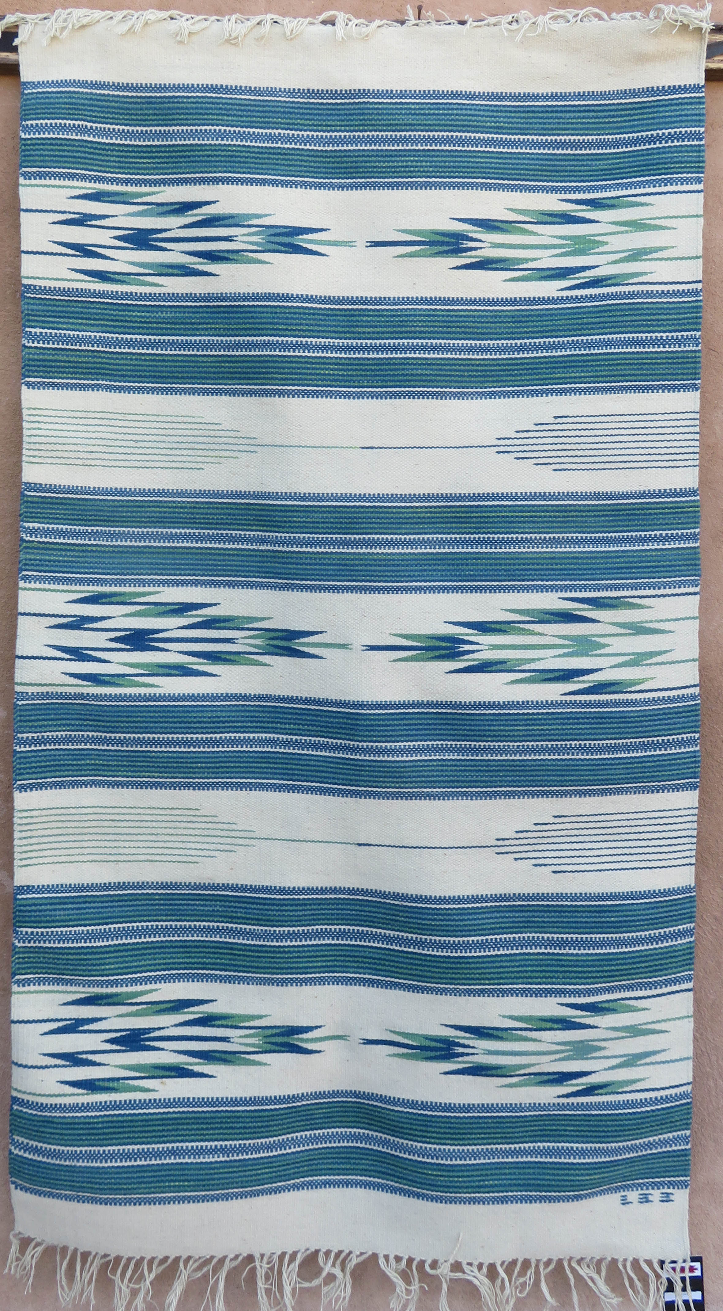 36X60, Rudy Lee Valdez, Rio Grande/"Moki", Natural- Blue (Naturally dyed with Indigo), Green (Indigo over Chamisa)
