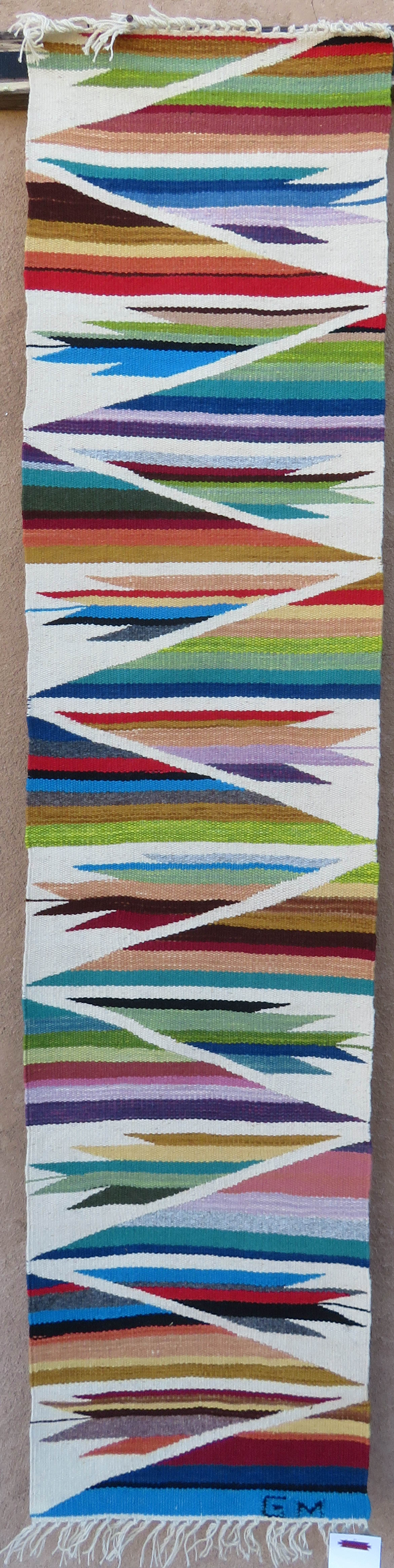 Modern, 15X60, Gloria Montoya, Natural- Rainbow of Commercial and Natural Dyes, Including: Blue (Indigo), Red (Cochineal), Orange (Cotta), Yellow (Chamisa), Brown (Black Walnut), Green (Indigo over Chamisa), Purple (Indigo over Cochineal), Pink (Cochineal)