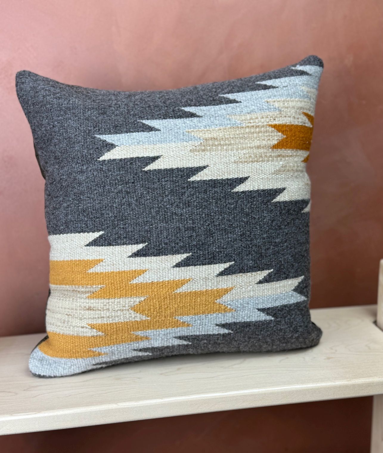 16X16, Shiri Klein, Pillow, CONSIGNMENT, Brown- Yellows (Cota), Gray, 100% Wool, Hand and commercially dyed yarns, Back= Faux Suede