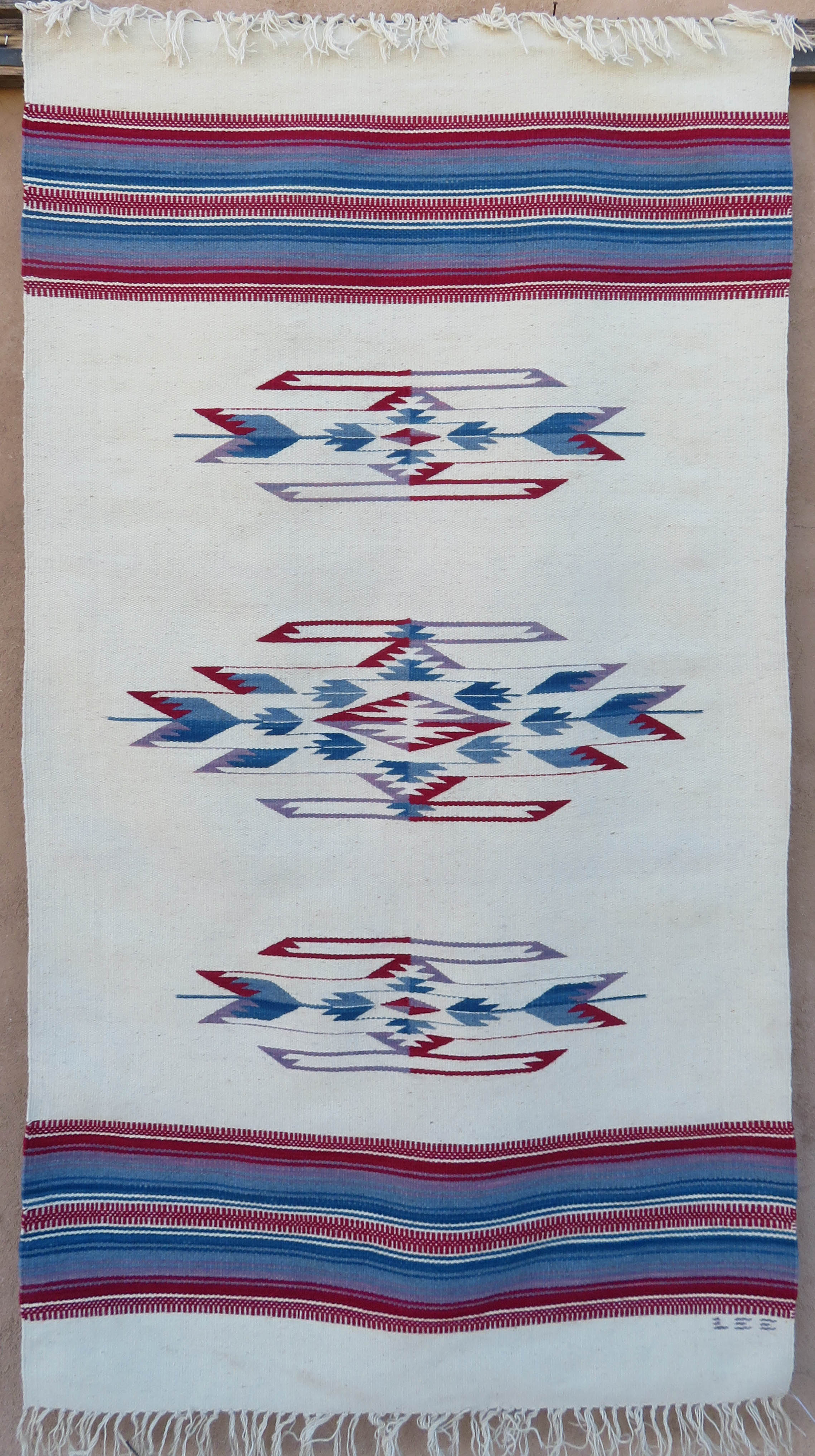Chimayo, 36X60, Rudy Lee Valdez, Natural- Red (Naturally dyed with Cochineal), Purple (Naturally dyed with Indigo over Cochineal), Blue (Naturally dyed with Indigo)