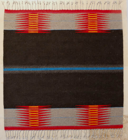 45X45, Fred Black, CONSIGNMENT, Brown- Gray, Red, Blue, Orange, 100% Navajo Churro Wool