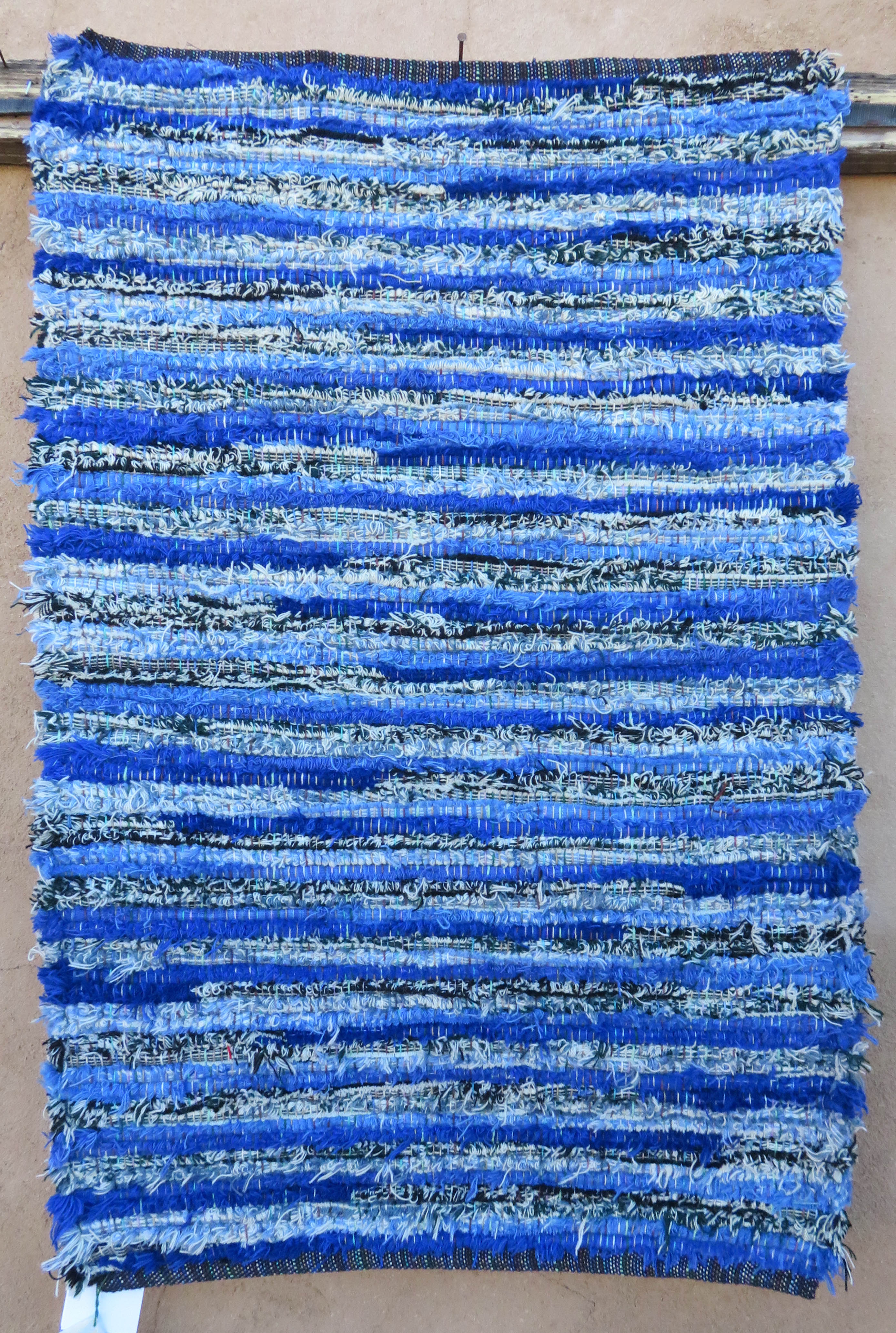 22X34, Sandy Voss, CONSIGNMENT, Rag Rug, Wool, Light Blue- Dark Blue, Green, White