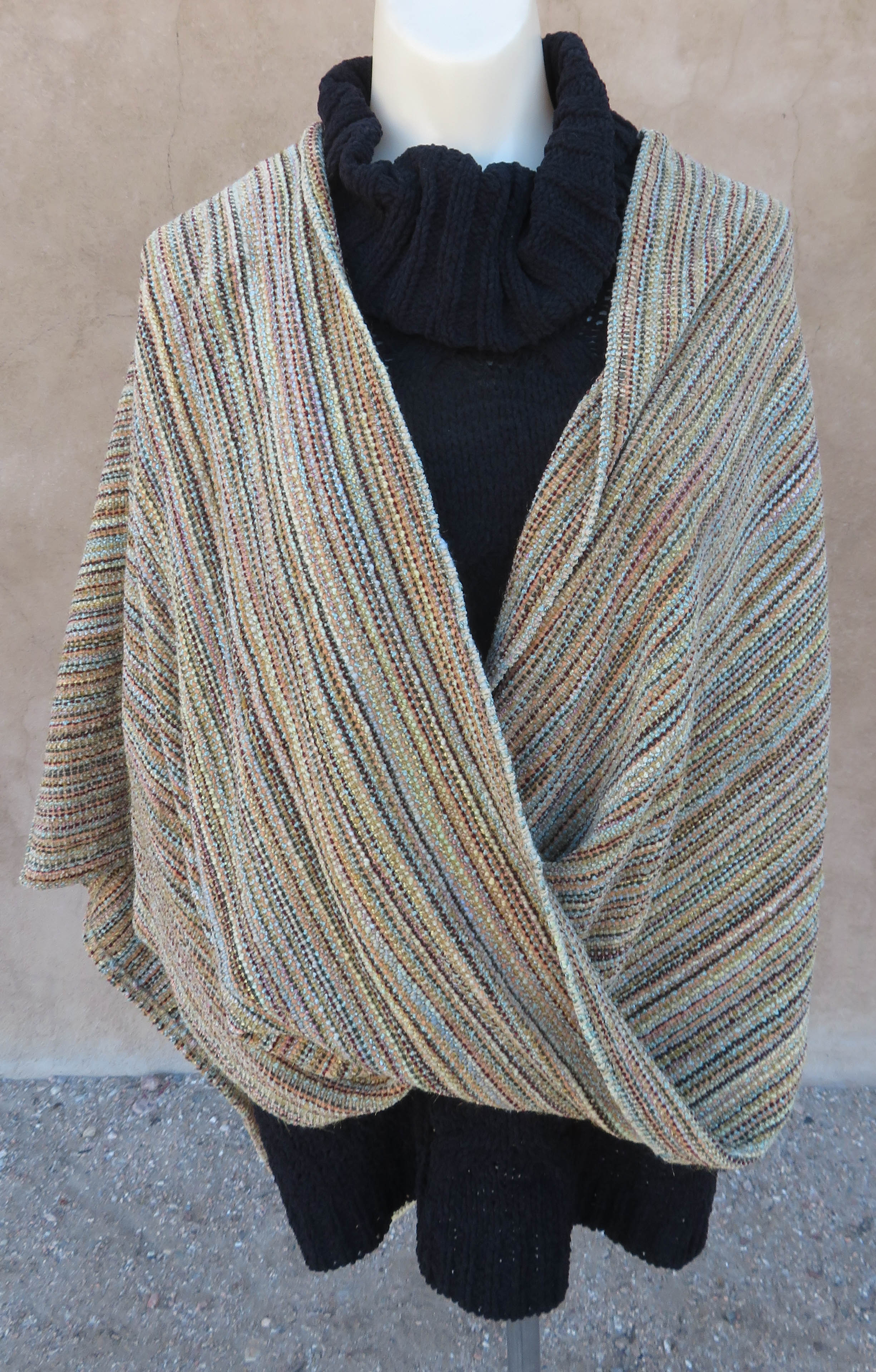 Mobius Scarf, CONSIGNMENT, Robin Pascal, Mobius Gold/Brown, Yellow, Red, Acrylic, Cotton, Polyester, Rayon, Metallic, Nylon, Dry Clean OR Machine Wash