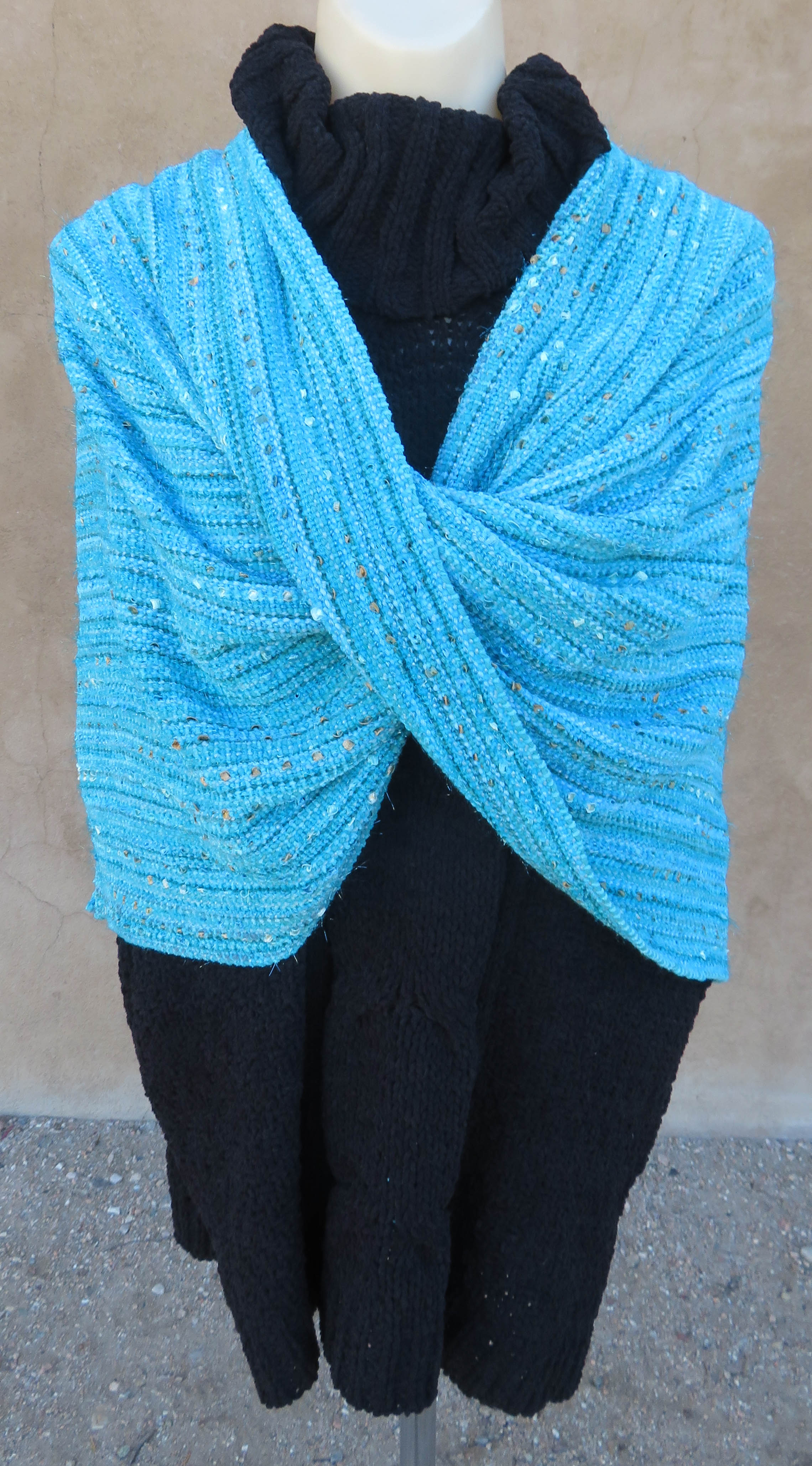 Mobius Scarf, CONSIGNMENT, Robin Pascal, Mobius Turquoise, Green, Blue, Gold, Acrylic, Cotton, Polyester, Rayon, Metallic, Nylon, Dry Clean OR Machine Wash
