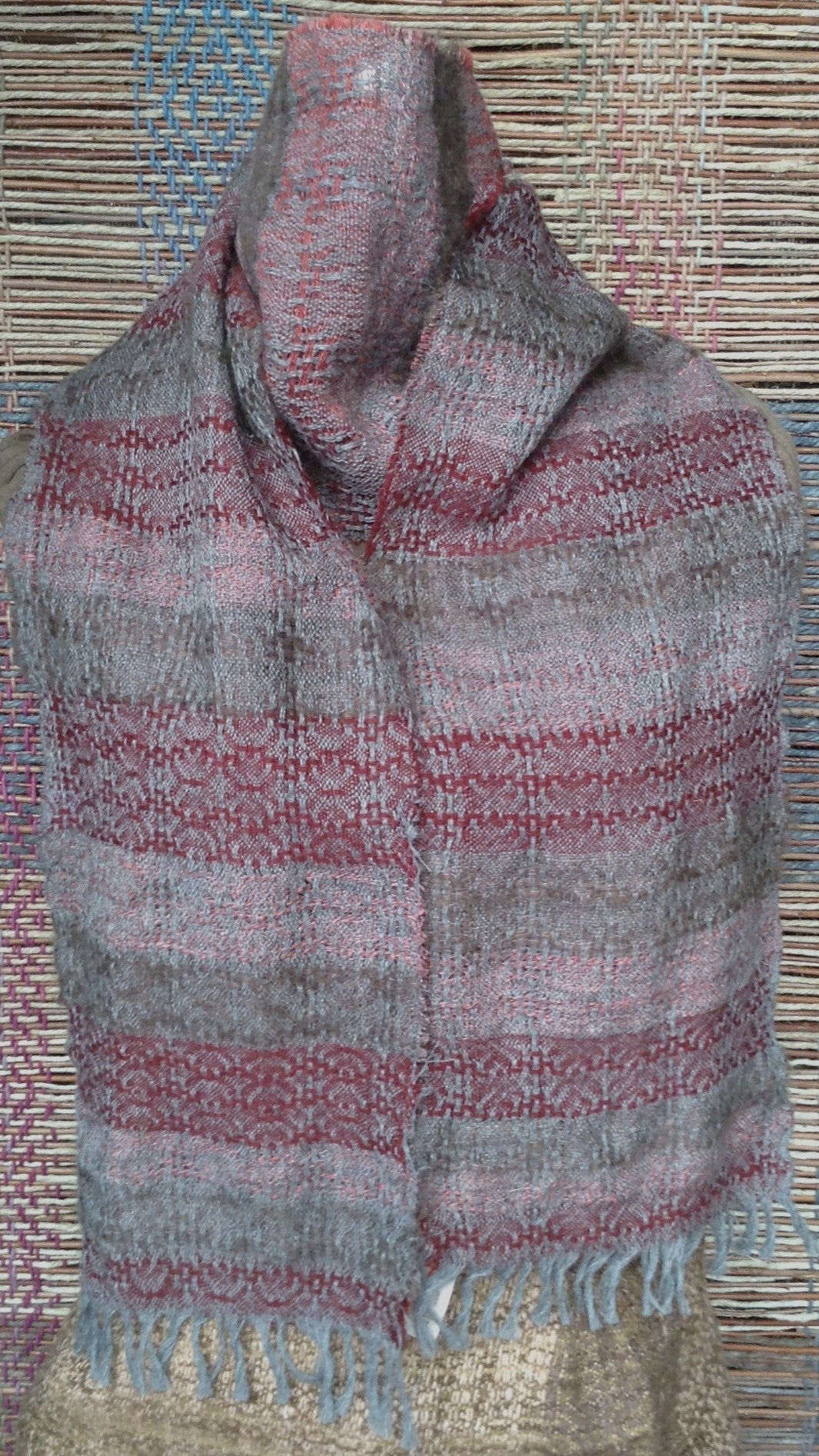 Scarf, Leigh Alexander, CONSIGNMENT, Mohair, Cashmere, Baby Alpaca, Gray/Red/Pink